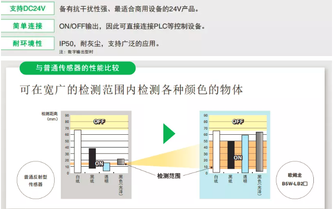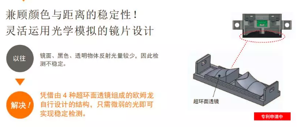 首選介紹歐姆龍限定反射式光電傳感器的三大特點: