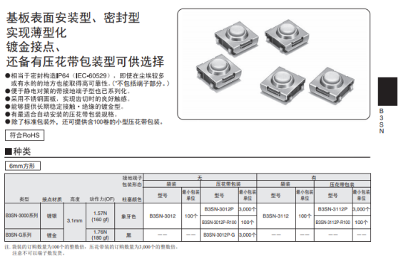 歐姆龍的輕觸開(kāi)關(guān)普遍應(yīng)用在電動(dòng)牙刷,輕觸開(kāi)關(guān)適合高密度表面貼裝,有的焊接后可清洗,密封型可防塵,最適合惡劣環(huán)境選用,電路設(shè)計(jì)簡(jiǎn)單。產(chǎn)品壽命10萬(wàn)~1000萬(wàn)次不等。