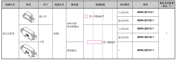 歐姆龍限定反射型傳感器B5W應用在縫紉機中,這個系列的傳感器具有哪些特點,如下:
