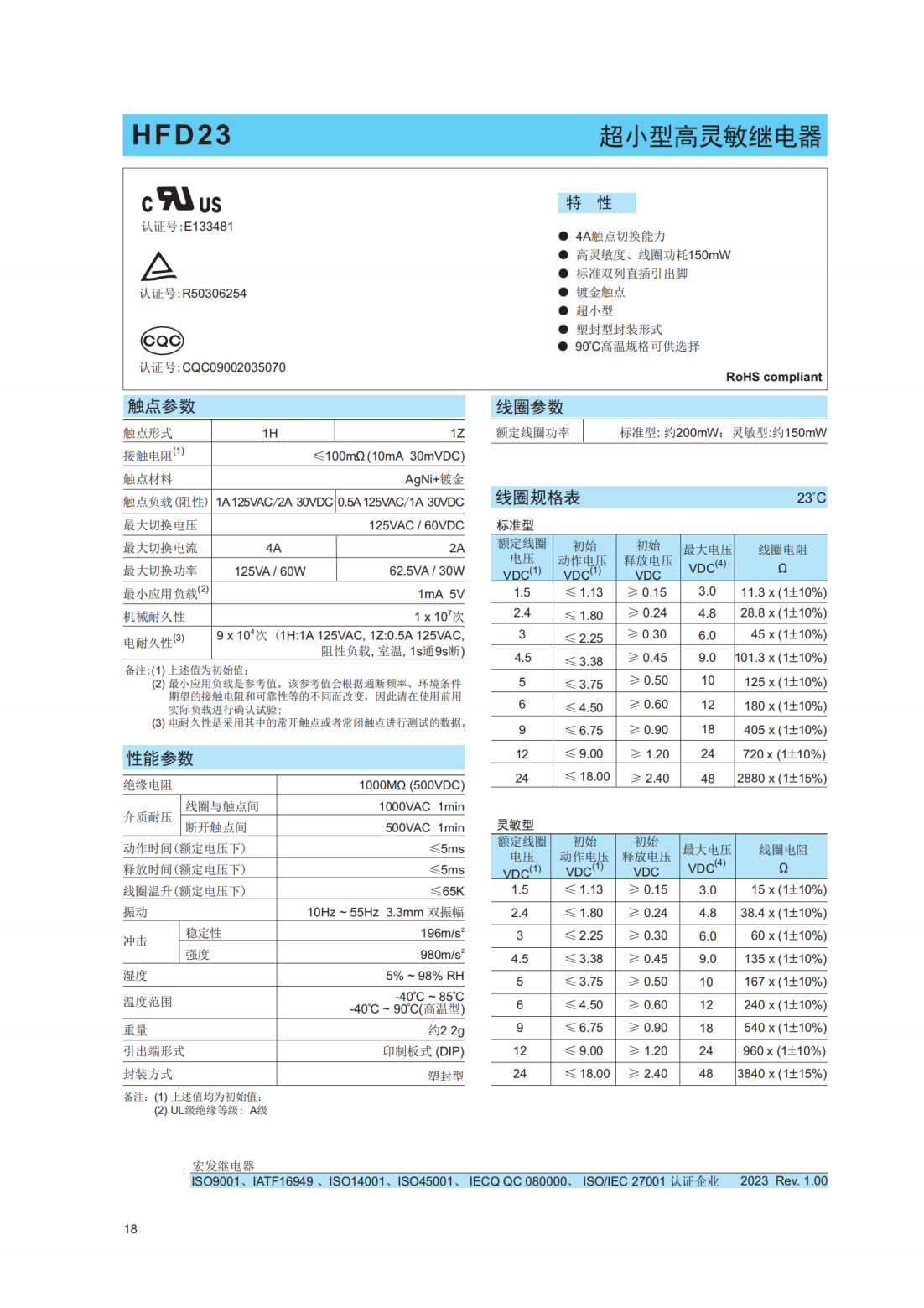 HFD23-012-1ZS4宏發繼電器