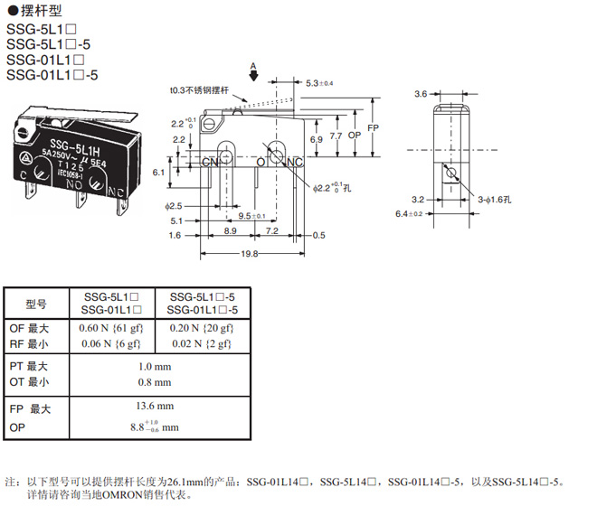注:SPST-NO和SPES-NC型號的詳細情況,請咨詢當?shù)豋MRON銷售代表