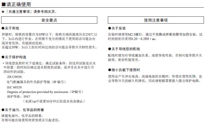 針狀按鈕型有自由位置和動(dòng)作限度位置、擺桿為動(dòng)作限度位置時(shí)的值。 接點(diǎn)為開(kāi)路和閉路1ms以內(nèi)。 |