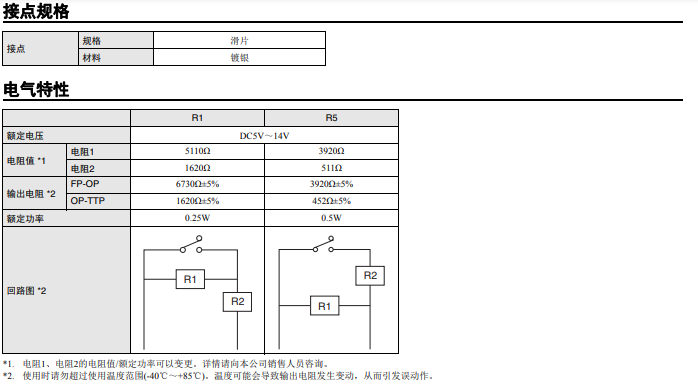 內(nèi)置電阻,可檢測(cè)4種狀態(tài) 長(zhǎng)行程密封型開關(guān) 開關(guān) ON/OFF/短路/斷線 輸出4種狀態(tài) 即使無擺桿也便于使用的長(zhǎng)行程規(guī)格 (OT參考值:1.4mm) 憑借滑動(dòng)接點(diǎn)結(jié)構(gòu)實(shí)現(xiàn)高接觸可靠性和安靜的動(dòng)作音