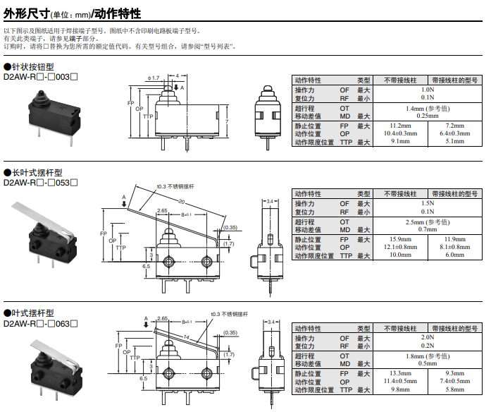 D2AW-R 歐姆龍長(zhǎng)行程密封型歐姆龍開關(guān)