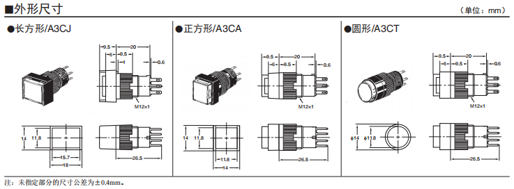 A3C系列按鈕歐姆龍開關(帶燈、不帶燈)(圓型φ12)