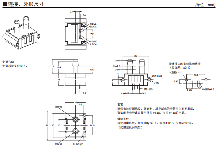 測量范圍:0~250Pa 小型、高精度、耐環(huán)境性能卓越的差壓傳感器 ±3%RD的高精度。 具備直線補償、溫度補償功能。 數(shù)字輸出(I2C通信)。 高流量阻抗減少旁路配置的影響。