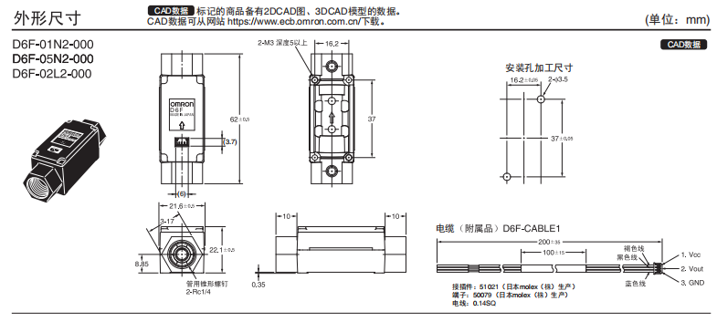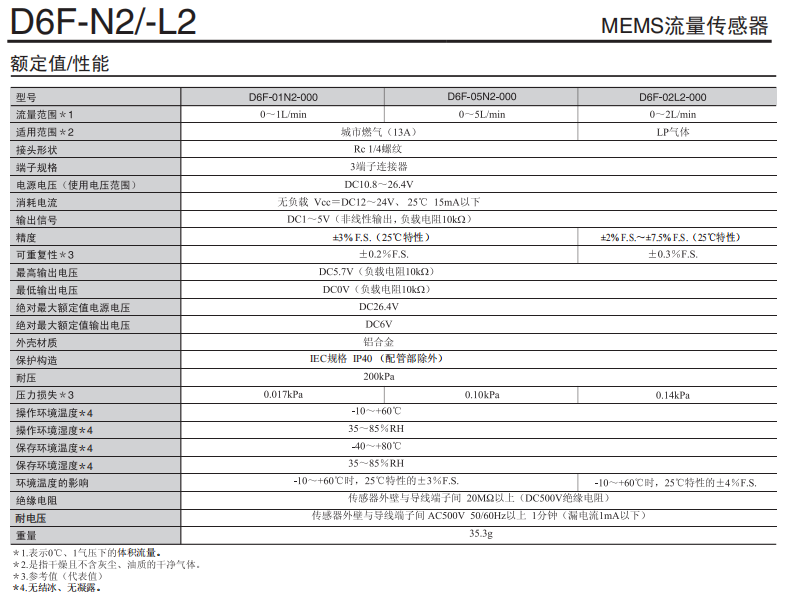 D6F-N2/-L2 高精度流量歐姆龍傳感器